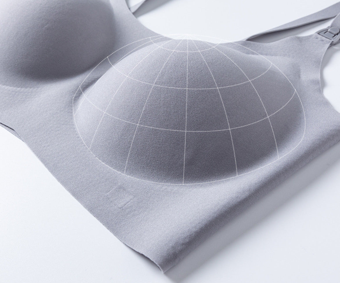 A unique, silky-soft fabric that gives you goosebumps. Suitable for cups C to G. This fabric is made of smooth, breathable material that is gentle on your skin, chest, and ribs. It gently stretches and adapts to your growing breasts, without seams that press against your sensitive breasts or skin, causing unsightly lines.